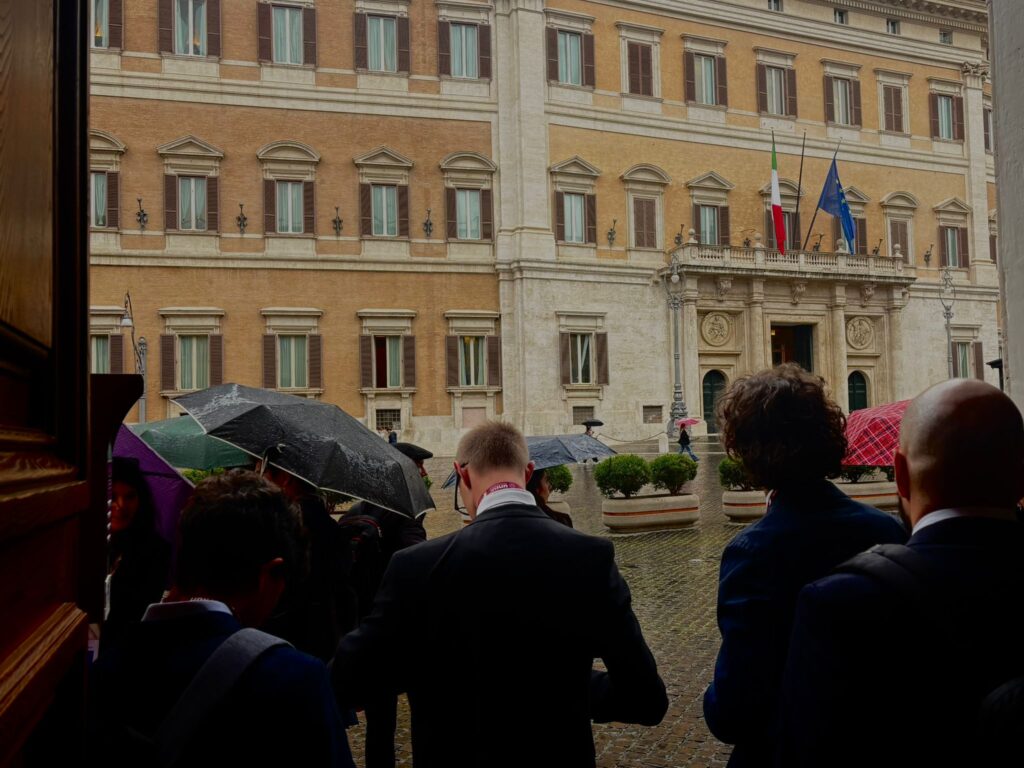 Proprio all’interno di una delle tribune presenti nell’Aula le studentesse e gli studenti sono potuti entrare per assistere ai lavori della Camera. La discussione era sulla cittadinanza (Decreto Legge che è passato con una larga maggioranza) Gli studenti hanno potuto assistere alle votazioni e alle discussioni tra parlamentari, presieduto dal Vice Presidente della Camera l’onorevole Fabio Rampelli, che ha anche salutato tutti gli studenti e le studentesse, assieme ai professori dell’Università di Macerata presenti in Tribuna per assistere ai lavori, visitatori a cui è stato riservato anche un applauso.
