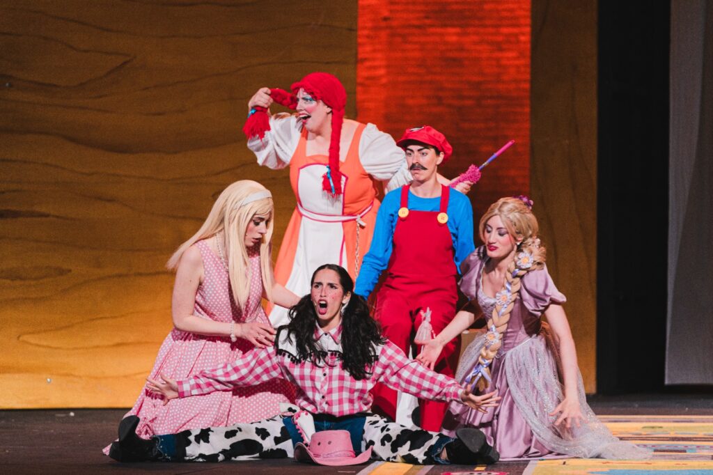 La scenografia si è colorata come una cameretta di bimbi e protagonisti sul palco sono stati giocattoli animati e pronti a scherzare.