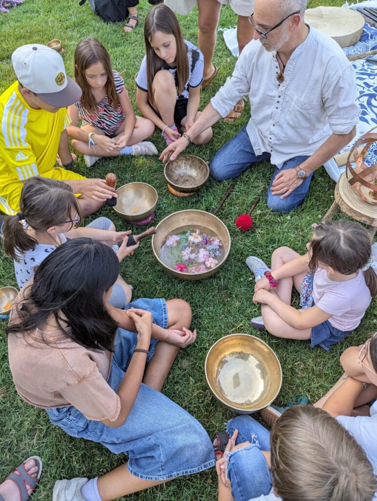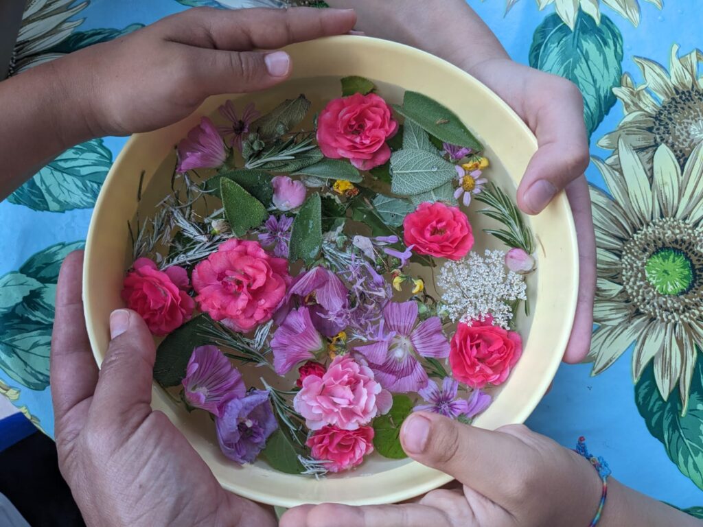 Secondo la tradizione popolare, nella notte tra il 23 e il 24 giugno si lasciano in infusione in acqua fredda fiori ed erbe spontanee raccolte nei campi: iperico, lavanda, artemisia, salvia, rosmarino, camomilla, malva, petali di rosa. Ogni pianta ha un significato simbolico che si riflette nelle sue proprietà. I bambini e le bambine, guidati con entusiasmo e attenzione, hanno imparato a riconoscere, cercare e raccogliere le erbe, connettendosi in modo diretto e gioioso con l’ambiente naturale.