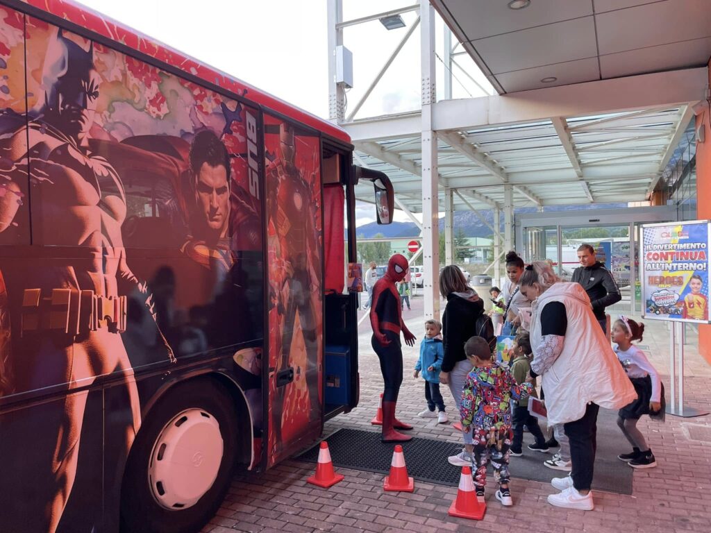 Sarà presente l’ “HeroesBus” il fantastico bus dei super eroi, un ambiente magico dove ritrovare Capitan America, Iron Man, Superman, Spiderman e tanti altri.