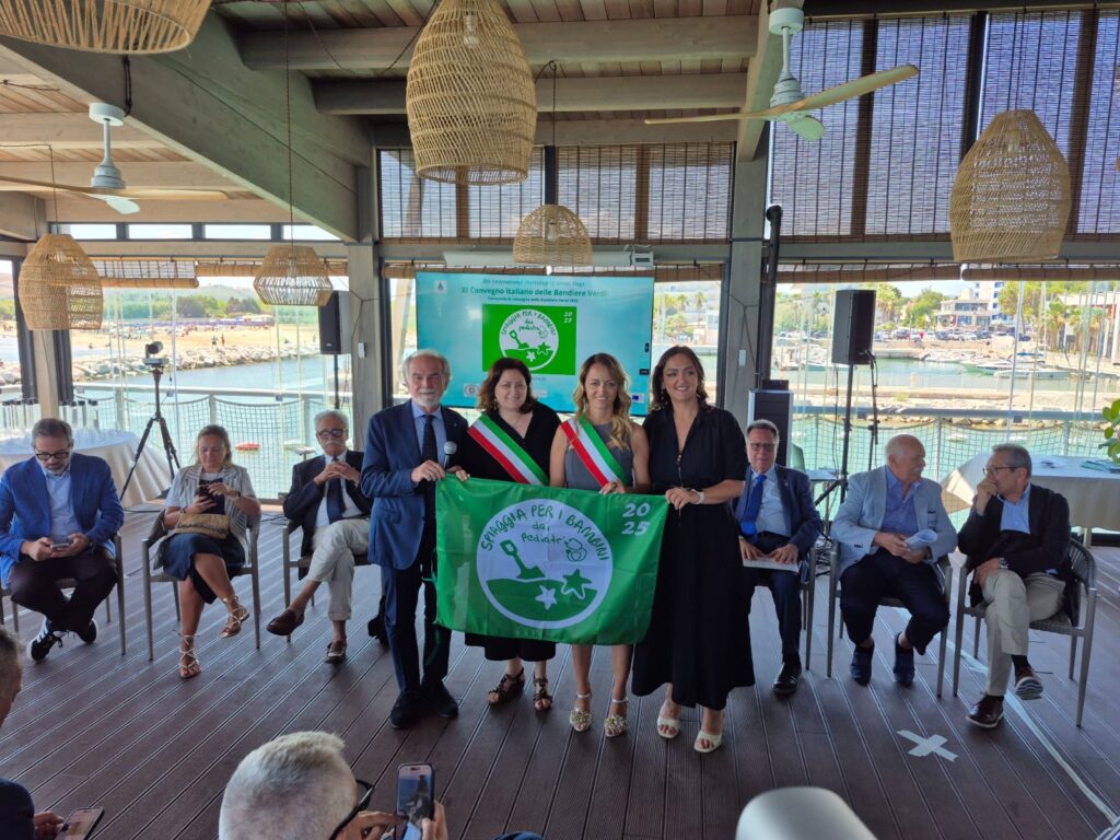 Civitanova ha ricevuto ufficialmente la 13esima Bandiera Verde 2025, il prestigioso riconoscimento assegnato dai pediatri italiani alle località balneari più adatte alle famiglie, alle bambine e ai bambini. La cerimonia di consegna si è svolta sabato a San Salvo Marina nel Porto turistico Trabocco Diamante, dove l’assessora Barbara Capponi ha ritirato il vessillo per la città, simbolo di un impegno costante per la sicurezza e l’accoglienza delle famiglie. L’evento, presieduto dal professor Italo Farnetani, ha visto la partecipazione di pediatri, medici, amministratori e operatori del settore turistico provenienti da tutta Italia, che hanno avuto l’opportunità di confrontarsi su temi di grande attualità come la sicurezza in mare, i benefici del sole per la salute dei più piccoli, e l’importanza di strutture balneari attrezzate per le esigenze delle famiglie.
