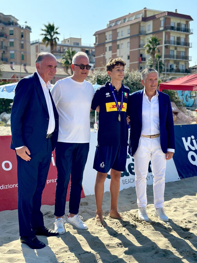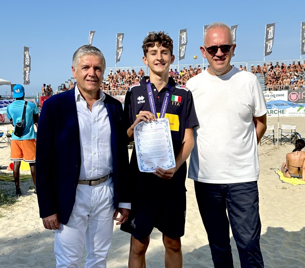 Durante la prima giornata della 26a edizione del King&Queen Beach Volley, il sindaco di Civitanova, Fabrizio Ciarapica, l’assessore allo Sport, Claudio Morresi e il presidente del Coni Marche, Fabio Luna hanno consegnato un attestato di riconoscimento al giovane talento della Lube Volley, per i suoi straordinari successi sportivi. Il premio, simbolo dell’affetto e dell’ammirazione della città, celebra la conquista del titolo di Campione europeo U16 con la maglia della azzurra e il prestigioso titolo di Miglior palleggiatore italiano della categoria.